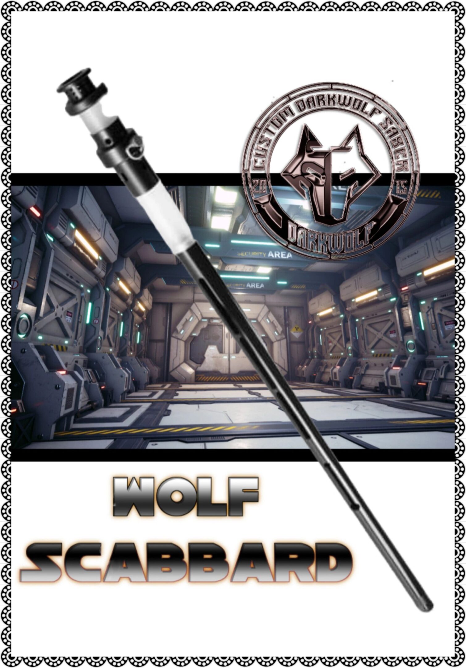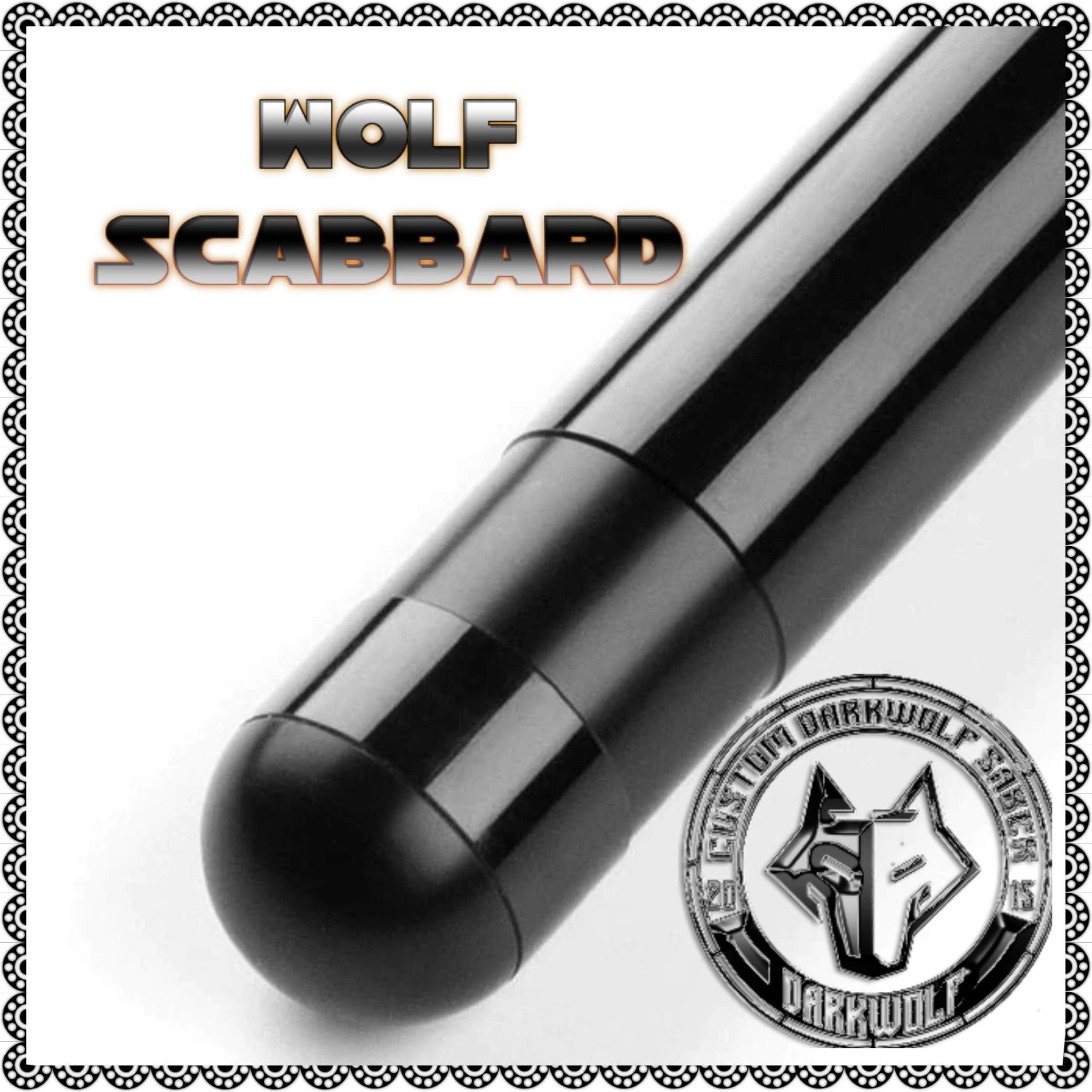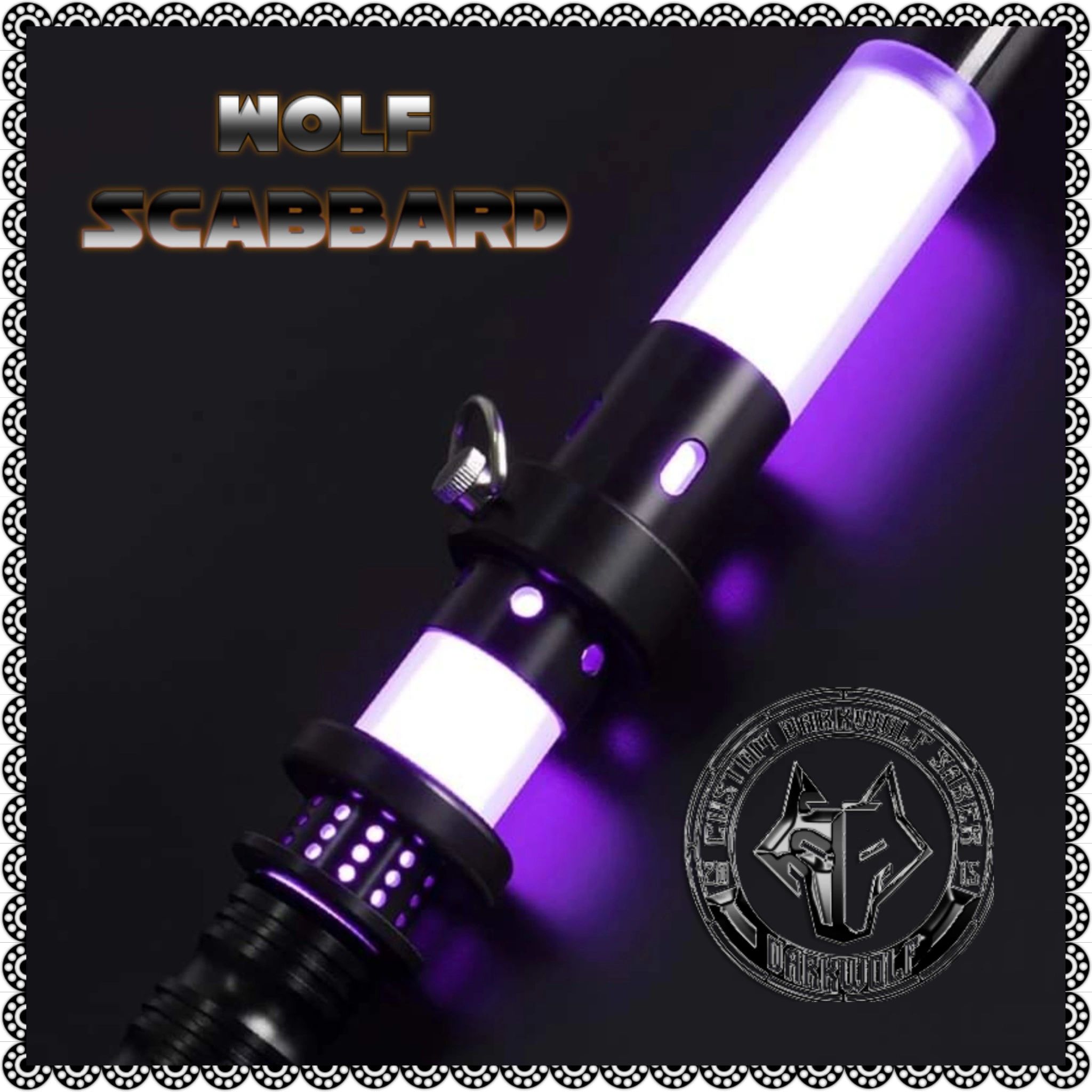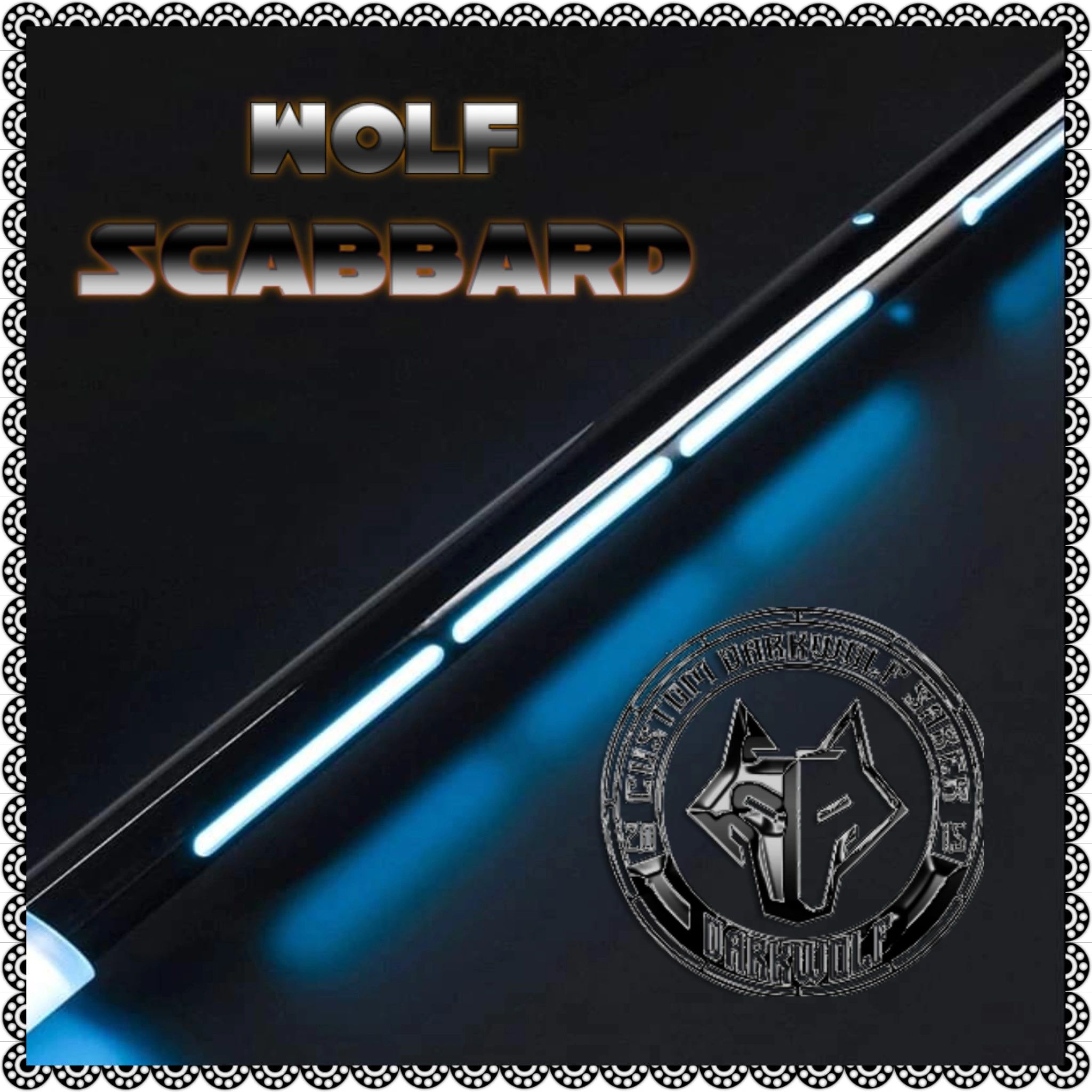 Wolf Scubbard v1 For lightsabers 1in Blades Limited Run – 95cm Long (37.40in length) – Scabbard had Cut outs for illumination – has D-RING for belt clip holder connection its an Overseas shipping from our factory item and has an up to 9-to-15-day processing not counting weekends for an order.