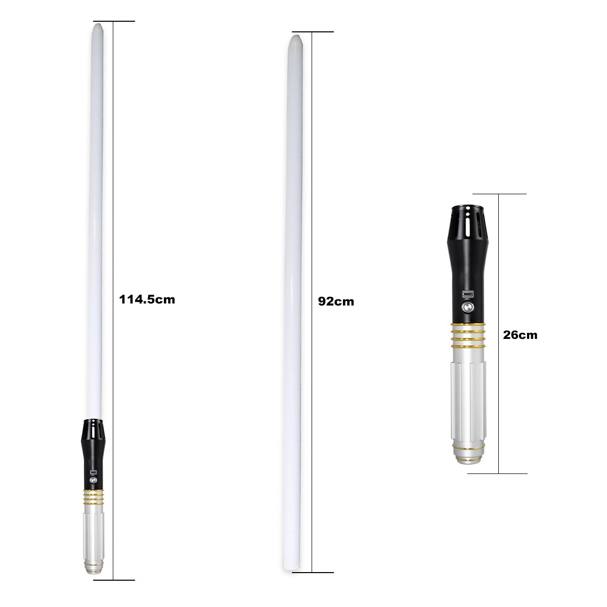 - Blade: The saber comes with a 1in detachable polycarbonate or pixel blade, available in various lengths to suit your preference.